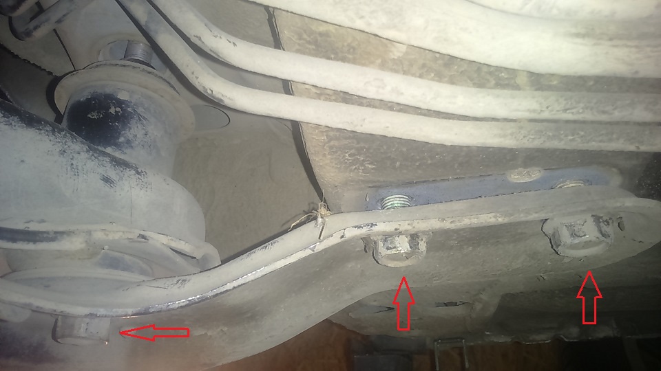 5. Головкой на 18 мм ослабьте 6 болтов на подрамнике и опустите его на несколько сантиметров.