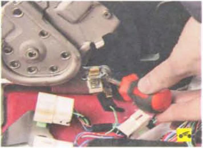 2. Отсоедините колодку провода выключателя контрольной лампы включения стояночного тормоза от клеммы выключателя.