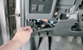 2. Снимите нижнюю облицовку панели приборов.