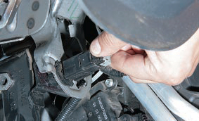 1. Отсоедините провод от клеммы «минус» аккумуляторной батареи.