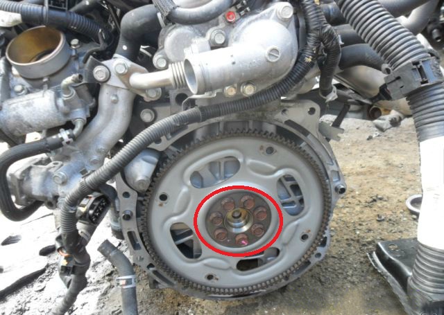 4. Снимите маховик или пластину привода гидротрансформатора с переходной пластиной.