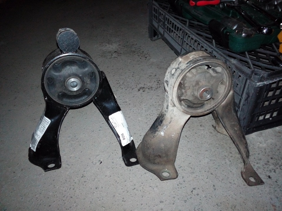 Некоторое время назад появилась вибрация по кузову на холостых и в движении. Осмотрев подушки, увидел, что на задней порван один луч.