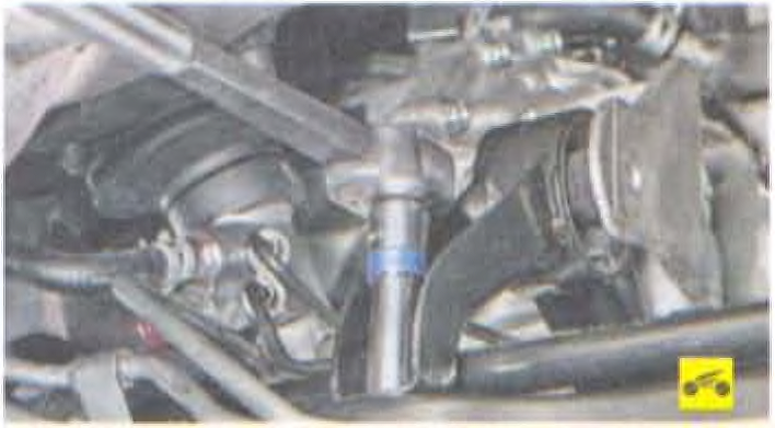 5. Выверните два болта переднего креплений задней опоры двигателя к защитному брусу.