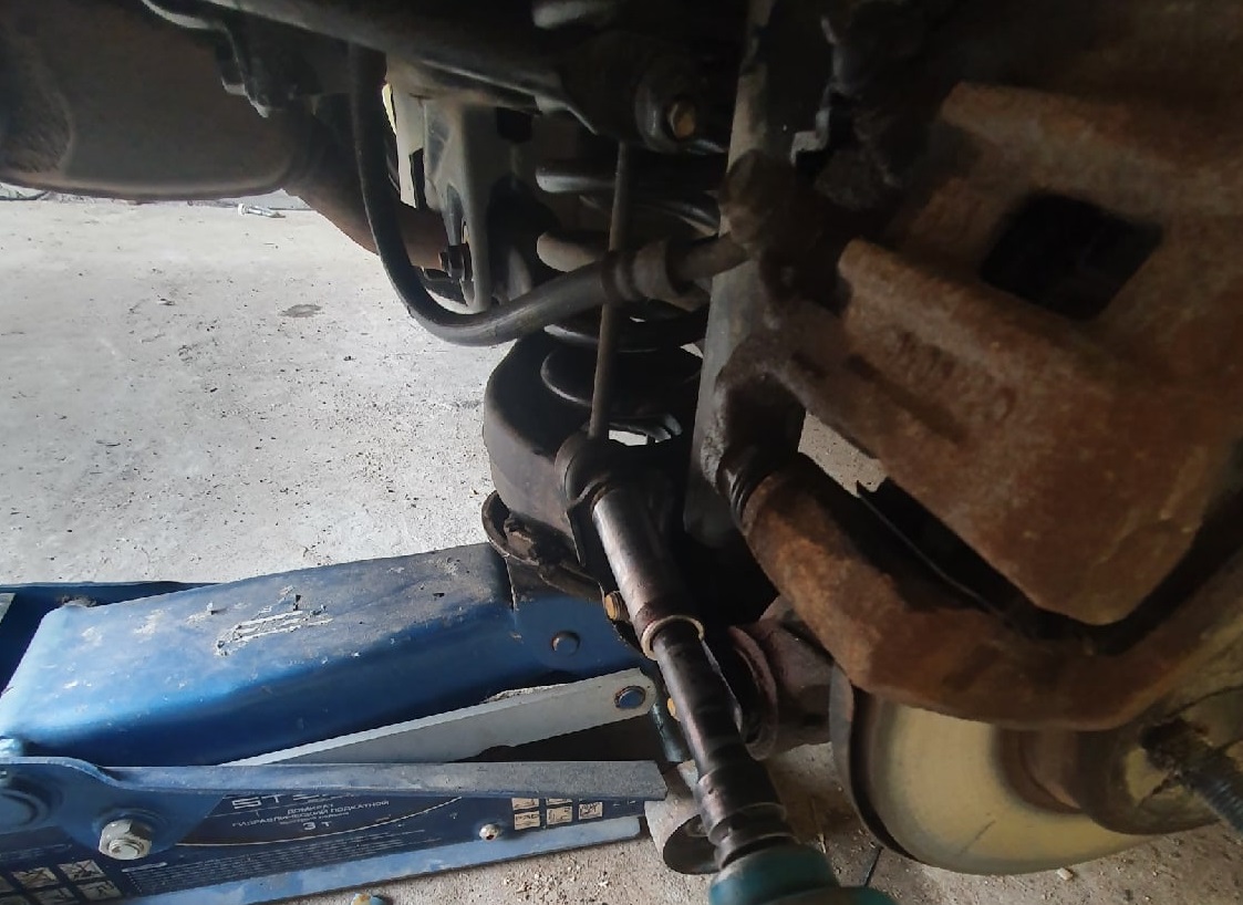 Если такой возможности нет, тогда поднимите и установите на опору заднюю часть автомобиля, со стороны заменяемой стойки стабилизатора и снимите колесо.