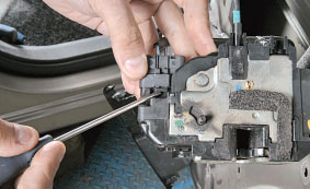 9. Установите новый механизм замка задней двери и все детали в порядке, обратном снятию.