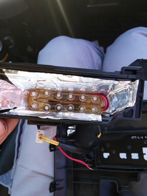 4. Чтобы свет распределялся равномерно и все режимы АКПП подсвечивались одинаково, наклейте с помощью ножниц и двухстороннего скотча фольгу как отражатель на корпус подсветки.