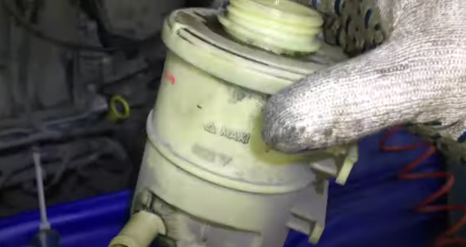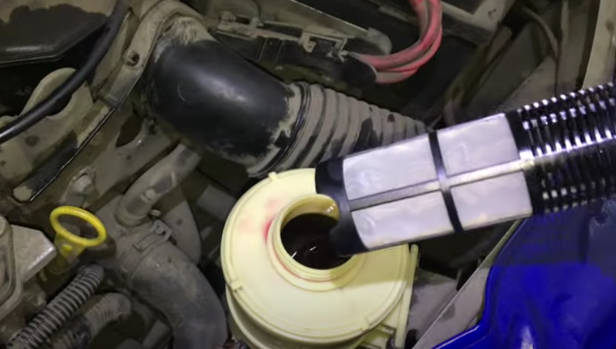 19. Вращайте рулем и периодически доливайте в бачок оставшуюся чистую жидкость. Всего должно уйти около 1 л.