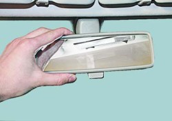 Положение внутреннего зеркала заднего вида регулируют поворотом в нужную сторону на шарнире кронштейна.