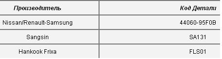 Оригинальные и неоригинальные коды задних тормозных колодок для Nissan Almera Classic
